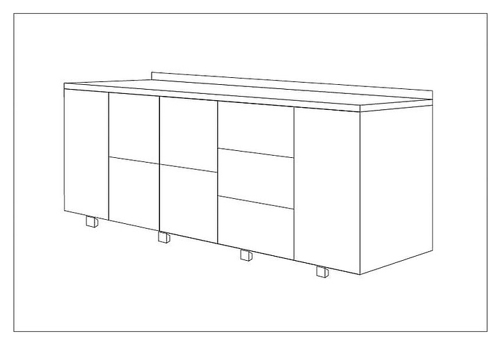 - 1 секция: дверь; 2 секция: 2 стандартных ящика; 3 секция: 2 стандартных ящика; 4 секция: 3 маленьких ящика