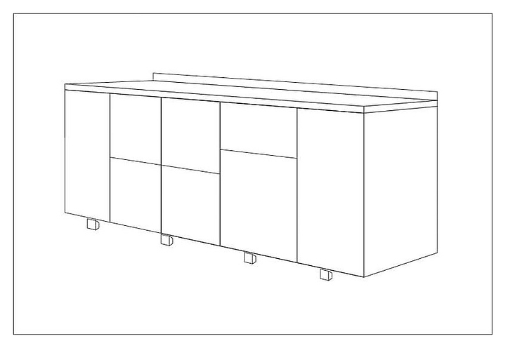 - 1 секция: дверь; 2 секция: 2 стандартных ящика; 3 секция: 2 стандартных ящика; 4 секция: 1 маленький ящик и 1 большой ящик