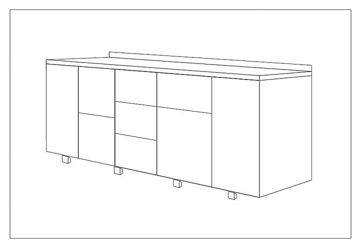- 1 секция: дверь; 2 секция: 2 стандартных ящика; 3 секция: 3 маленьких ящика; 4 секция: 1 маленький ящик и 1 большой ящик