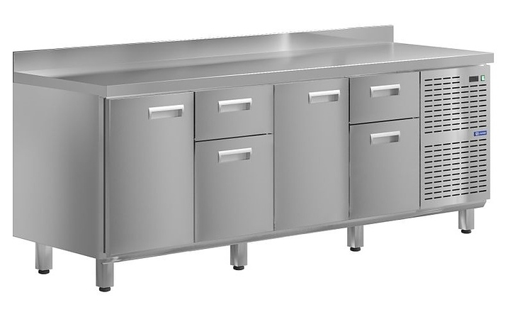 Морозильный стол KAYMAN KСМ-1414/70 предназначен для охлаждения, хранения и обработки пищевых продуктов в ресторанах, барах, кафе, столовых, на профессиональных кухнях и пищевых производствах. На прочной столешнице можно резать, раскатывать и отбивать полуфабрикаты. Модель оснащена 4 ящиками и 2 дверьми. Изделие выполнено из высококачественной нержавеющей стали, отличающейся прочностью и долговечностью.