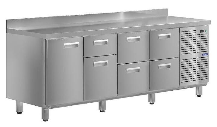 Морозильный стол KAYMAN KСМ-1422/60 предназначен для охлаждения, хранения и обработки пищевых продуктов в ресторанах, барах, кафе, столовых, на профессиональных кухнях и пищевых производствах. На прочной столешнице можно резать, раскатывать и отбивать полуфабрикаты. Модель оснащена 6 ящиками и 1 дверью. Изделие выполнено из высококачественной нержавеющей стали, отличающейся прочностью и долговечностью.