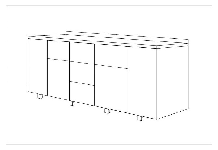 - 1 секция: дверь; 2 секция: 1 маленький ящик и 1 большой ящик; 3 секция: 3 маленьких ящика; 4 секция: 1 маленький ящик и 1 большой ящик