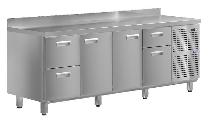 Морозильный стол KAYMAN KСМ-2114/60 предназначен для охлаждения, хранения и обработки пищевых продуктов в ресторанах, барах, кафе, столовых, на профессиональных кухнях и пищевых производствах. На прочной столешнице можно резать, раскатывать и отбивать полуфабрикаты. Модель оснащена 4 ящиками и 2 дверьми. Изделие выполнено из высококачественной нержавеющей стали, отличающейся прочностью и долговечностью.