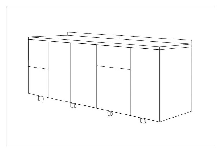 - 1 секция: 2 стандартных ящика; 2 секция: дверь; 3 секция: дверь; 4 секция: 1 маленький ящик и 1 большой ящик