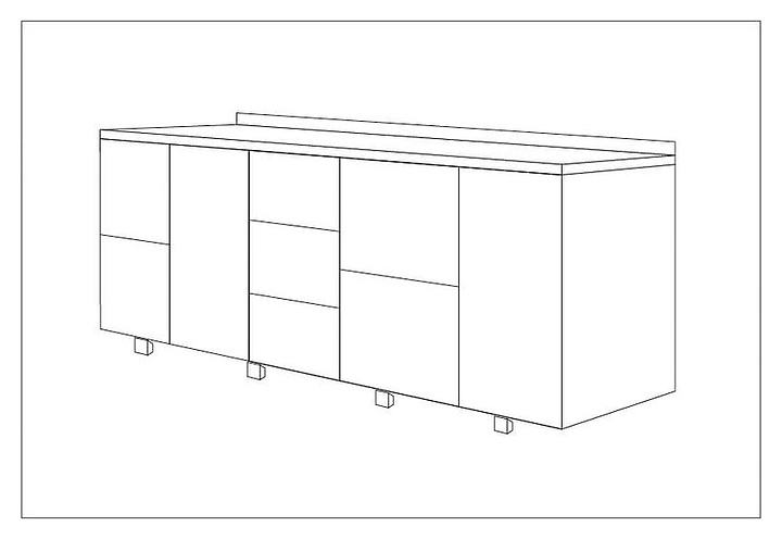 - 1 секция: 2 стандартных ящика; 2 секция: дверь; 3 секция: 3 маленьких ящика; 4 секция: 2 стандартных ящика