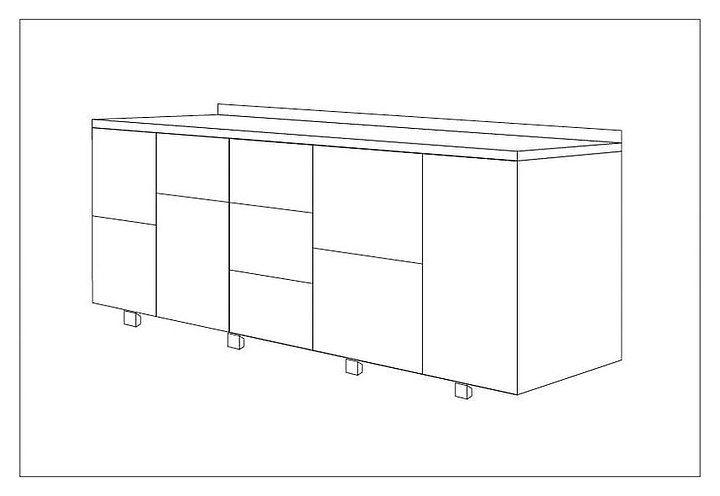 - 1 секция: 2 стандартных ящика; 2 секция: 1 маленький ящик и 1 большой ящик; 3 секция: 3 маленьких ящика; 4 секция: 2 стандартных ящика