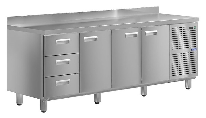 Морозильный стол KAYMAN KСМ-3111/70 предназначен для охлаждения, хранения и обработки пищевых продуктов в ресторанах, барах, кафе, столовых, на профессиональных кухнях и пищевых производствах. На прочной столешнице можно резать, раскатывать и отбивать полуфабрикаты. Модель оснащена 3 ящиками и 3 дверьми. Изделие выполнено из высококачественной нержавеющей стали, отличающейся прочностью и долговечностью.