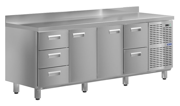 Морозильный стол KAYMAN KСМ-3112/70 предназначен для охлаждения, хранения и обработки пищевых продуктов в ресторанах, барах, кафе, столовых, на профессиональных кухнях и пищевых производствах. На прочной столешнице можно резать, раскатывать и отбивать полуфабрикаты. Модель оснащена 5 ящиками и 2 дверьми. Изделие выполнено из высококачественной нержавеющей стали, отличающейся прочностью и долговечностью.