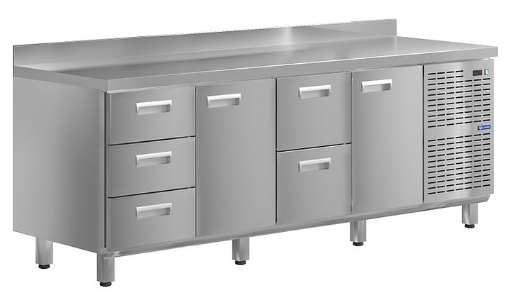 Морозильный стол KAYMAN KСМ-3121/70 предназначен для охлаждения, хранения и обработки пищевых продуктов в ресторанах, барах, кафе, столовых, на профессиональных кухнях и пищевых производствах. На прочной столешнице можно резать, раскатывать и отбивать полуфабрикаты. Модель оснащена 5 ящиками и 2 дверьми. Изделие выполнено из высококачественной нержавеющей стали, отличающейся прочностью и долговечностью.