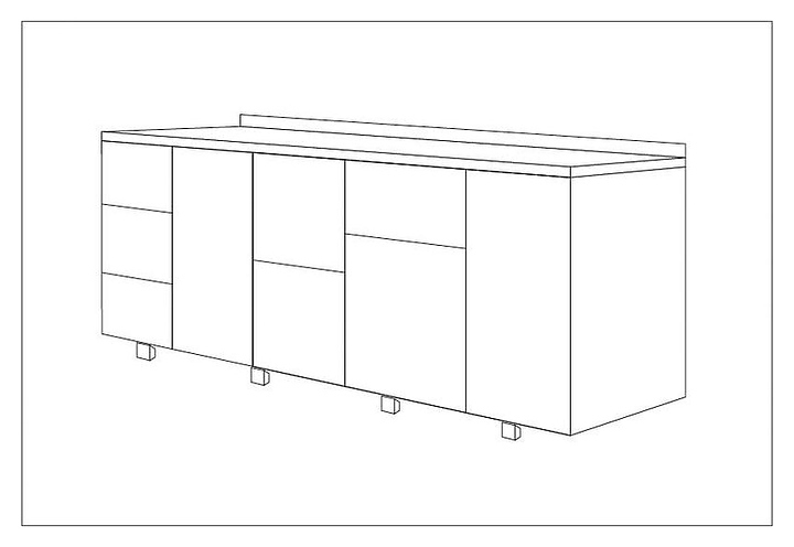 - 1 секция: 3 маленьких ящика; 2 секция: дверь; 3 секция: 2 стандартных ящика; 4 секция: 1 маленький ящик и 1 большой ящик