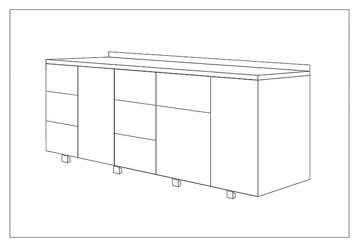 - 1 секция: 3 маленьких ящика; 2 секция: дверь; 3 секция: 3 маленьких ящика; 4 секция: 1 маленький ящик и 1 большой ящик