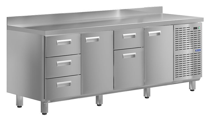 Морозильный стол KAYMAN KСМ-3141/70 предназначен для охлаждения, хранения и обработки пищевых продуктов в ресторанах, барах, кафе, столовых, на профессиональных кухнях и пищевых производствах. На прочной столешнице можно резать, раскатывать и отбивать полуфабрикаты. Модель оснащена 5 ящиками и 2 дверьми. Изделие выполнено из высококачественной нержавеющей стали, отличающейся прочностью и долговечностью.