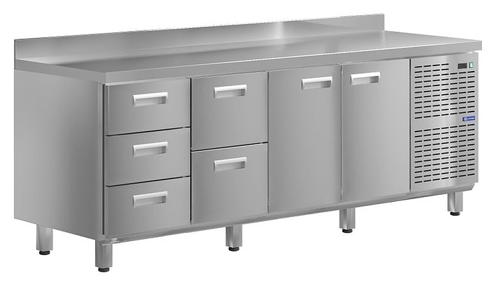 Морозильный стол KAYMAN KСМ-3211/70 предназначен для охлаждения, хранения и обработки пищевых продуктов в ресторанах, барах, кафе, столовых, на профессиональных кухнях и пищевых производствах. На прочной столешнице можно резать, раскатывать и отбивать полуфабрикаты. Модель оснащена 5 ящиками и 2 дверьми. Изделие выполнено из высококачественной нержавеющей стали, отличающейся прочностью и долговечностью.