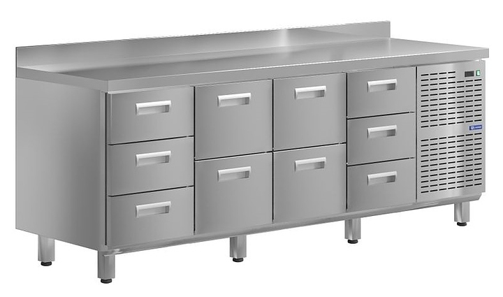 Морозильный стол KAYMAN KСМ-3223/60 предназначен для охлаждения, хранения и обработки пищевых продуктов в ресторанах, барах, кафе, столовых, на профессиональных кухнях и пищевых производствах. На прочной столешнице можно резать, раскатывать и отбивать полуфабрикаты. Модель оснащена 10 ящиками. Изделие выполнено из высококачественной нержавеющей стали, отличающейся прочностью и долговечностью.