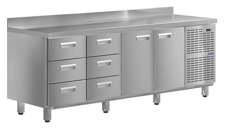 Морозильный стол KAYMAN KСМ-3311/70 предназначен для охлаждения, хранения и обработки пищевых продуктов в ресторанах, барах, кафе, столовых, на профессиональных кухнях и пищевых производствах. На прочной столешнице можно резать, раскатывать и отбивать полуфабрикаты. Модель оснащена 6 ящиками и 2 дверьми. Изделие выполнено из высококачественной нержавеющей стали, отличающейся прочностью и долговечностью.