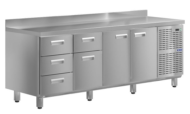Морозильный стол KAYMAN KСМ-3411/60 предназначен для охлаждения, хранения и обработки пищевых продуктов в ресторанах, барах, кафе, столовых, на профессиональных кухнях и пищевых производствах. На прочной столешнице можно резать, раскатывать и отбивать полуфабрикаты. Модель оснащена 5 ящиками и 2 дверьми. Изделие выполнено из высококачественной нержавеющей стали, отличающейся прочностью и долговечностью.