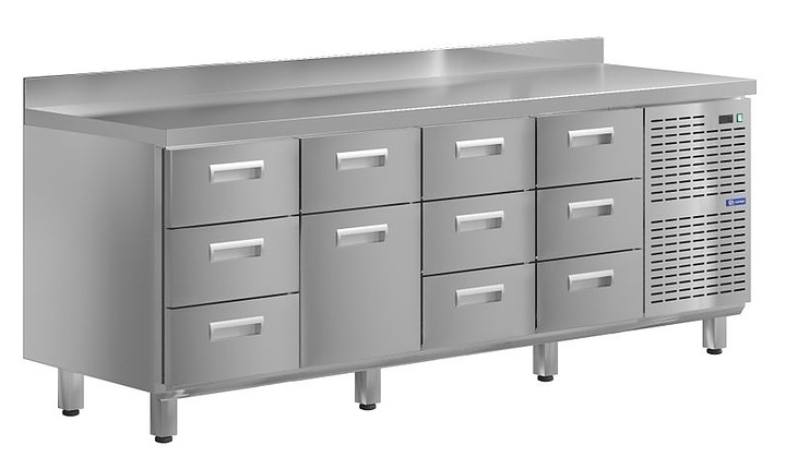 Морозильный стол KAYMAN KСМ-3433/60 предназначен для охлаждения, хранения и обработки пищевых продуктов в ресторанах, барах, кафе, столовых, на профессиональных кухнях и пищевых производствах. На прочной столешнице можно резать, раскатывать и отбивать полуфабрикаты. Модель оснащена 11 ящиками. Изделие выполнено из высококачественной нержавеющей стали, отличающейся прочностью и долговечностью.
