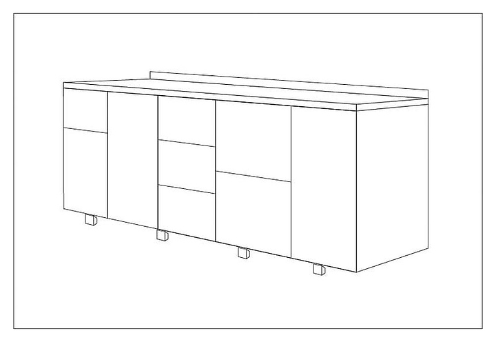 - 1 секция: 1 маленький ящик и 1 большой ящик; 2 секция: дверь; 3 секция: 3 маленьких ящика; 4 секция: 2 стандартных ящика
