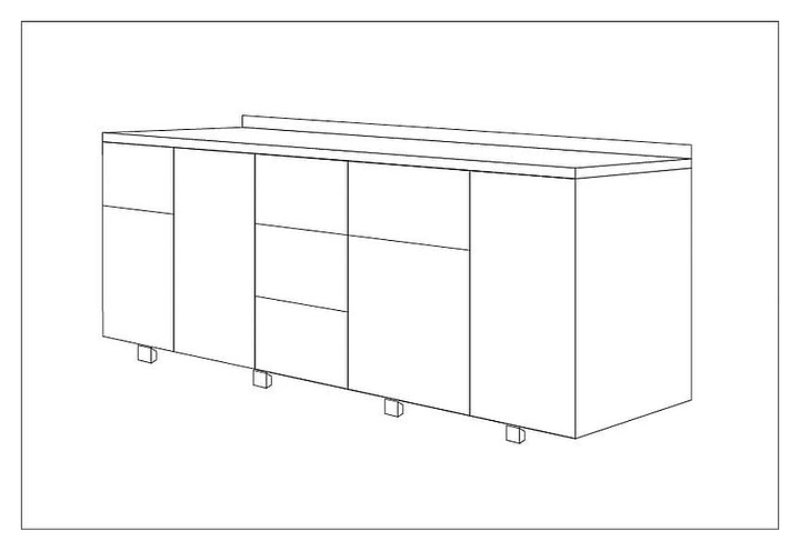 - 1 секция: 1 маленький ящик и 1 большой ящик; 2 секция: дверь; 3 секция: 3 маленьких ящика; 4 секция: 1 маленький ящик и 1 большой ящик