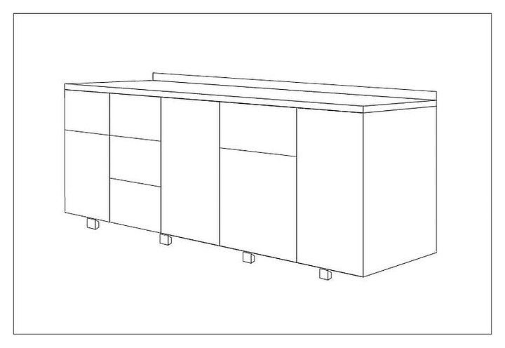 - 1 секция: 1 маленький ящик и 1 большой ящик; 2 секция: 3 маленьких ящика; 3 секция: дверь; 4 секция: 1 маленький ящик и 1 большой ящик