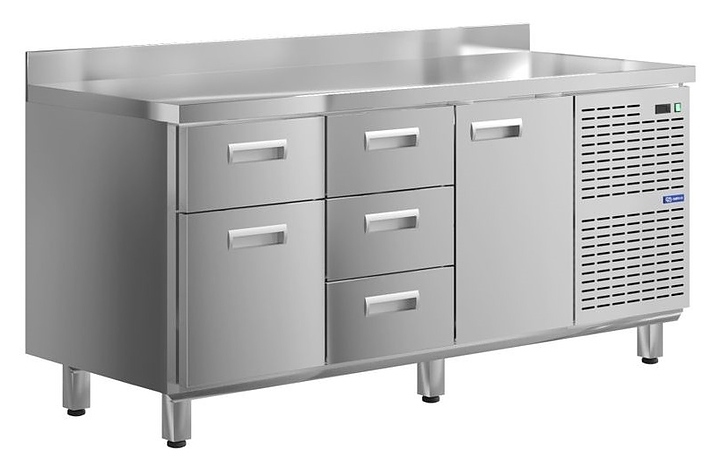 Морозильный стол KAYMAN KСМ-431/60 предназначен для охлаждения, хранения и обработки пищевых продуктов в ресторанах, барах, кафе, столовых, на профессиональных кухнях и пищевых производствах. На прочной столешнице можно резать, раскатывать и отбивать полуфабрикаты. Модель оснащена 5 ящиками. Изделие выполнено из высококачественной нержавеющей стали, отличающейся прочностью и долговечностью.