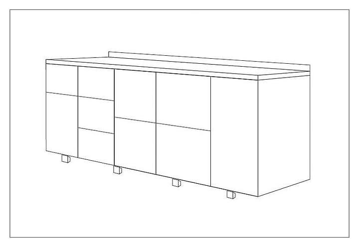 - 1 секция: 1 маленький ящик и 1 большой ящик; 2 секция: 3 маленьких ящика; 3 секция: 2 стандартных ящика; 4 секция: 2 стандартных ящика