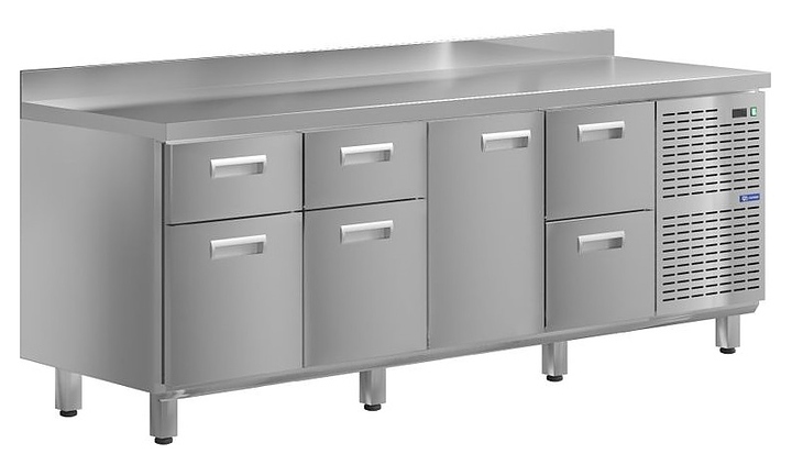 Морозильный стол KAYMAN KСМ-4412/60 предназначен для охлаждения, хранения и обработки пищевых продуктов в ресторанах, барах, кафе, столовых, на профессиональных кухнях и пищевых производствах. На прочной столешнице можно резать, раскатывать и отбивать полуфабрикаты. Модель оснащена 6 ящиками и 1 дверью. Изделие выполнено из высококачественной нержавеющей стали, отличающейся прочностью и долговечностью.