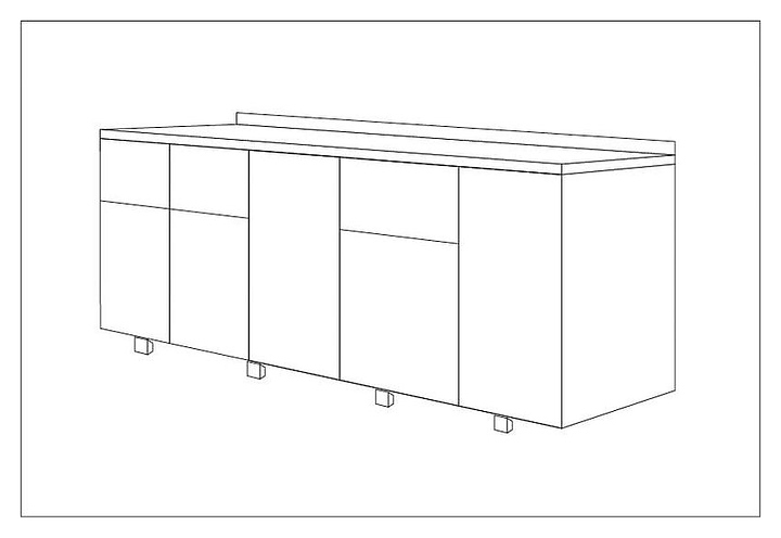- 1 секция: 1 маленький ящик и 1 большой ящик; 2 секция: 1 маленький ящик и 1 большой ящик; 3 секция: дверь; 4 секция: 1 маленький ящик и 1 большой ящик