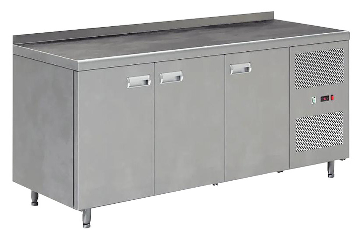 Морозильный стол LARK GN 111/BT используется на предприятиях общественного питания и торговли для хранения и заморозки мясных и рыбных продуктов, полуфабрикатов, а также для раскатывания теста и обработки ингредиентов на рабочей поверхности. Цельнозаливной корпус обеспечивает высокую герметичность и жёсткость конструкции. Модель оснащена 3 распашными дверьми, расположенным сбоку агрегатным отсеком и столешницей с бортом. Корпус и столешница выполнены из нержавеющей стали.