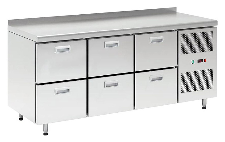 Морозильный стол LARK GN 222/BT используется на предприятиях общественного питания и торговли для хранения и заморозки мясных и рыбных продуктов, полуфабрикатов, а также для раскатывания теста и обработки ингредиентов на рабочей поверхности. Цельнозаливной корпус обеспечивает высокую герметичность и жёсткость конструкции. Модель оснащена 6 ящиками, расположенным сбоку агрегатным отсеком и столешницей с бортом. Корпус и столешница выполнены из нержавеющей стали.