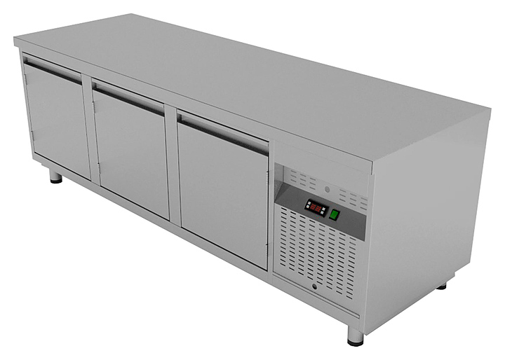Морозильный стол под тепловое оборудование Gastrolux СМТ3-187/3Д/Sp серии Standart предназначен для раскатки теста и обработки ингредиентов для приготовления блюд, заморозки и хранения продуктов, полуфабрикатов и мороженого, а также размещения на нем теплового оборудования на предприятиях общественного питания и торговли. Корпус и рабочая поверхность выполнены из нержавеющей стали AISI 430, задняя стенка - из оцинкованной стали с полимерным покрытием RAL.