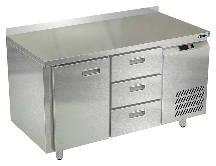 Морозильный стол Техно-ТТ СПБ/М-222/13-1306 предназначен для раскатки теста, обработки, заморозки и долговременного хранения продуктов, полуфабрикатов, напитков и мороженого на предприятиях общественного питания и торговли. Модель оснащена 1 секцией с дверью и регулируемой полкой-решеткой, 1 секцией с 3 ящиками, направляющими с доводчиками (Австрия), петлями-доводчиками (Польша), бортом и круглыми ножками, регулируемыми по высоте на 50 мм (Италия). Корпус и столешница выполнены из нержавеющей стали AISI 430, задняя стенка и дно - из оцинкованной стали.