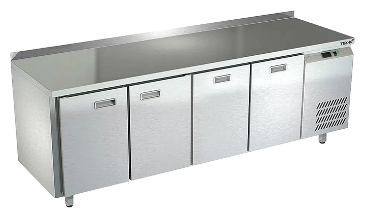 Морозильный стол Техно-ТТ СПБ/М-222/22-2206 предназначен для раскатки теста, обработки, заморозки и долговременного хранения продуктов, полуфабрикатов, напитков и мороженого на предприятиях общественного питания и торговли. Модель оснащена 2 секциями с 2 дверьми и регулируемой полкой-решеткой, 2 секциями с 2 ящиками, направляющими с доводчиками (Австрия), петлями-доводчиками (Польша), бортом и круглыми ножками, регулируемыми по высоте на 50 мм (Италия). Корпус и столешница выполнены из нержавеющей стали AISI 430, задняя стенка и дно - из оцинкованной стали.