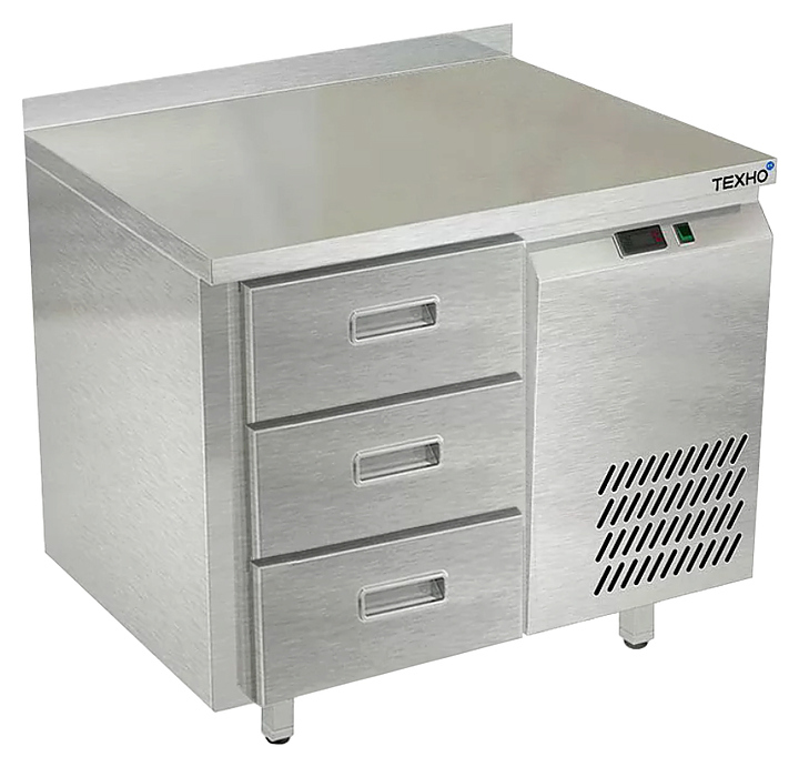 Морозильный стол Техно-ТТ СПБ/М-223/03-907 предназначен для раскатки теста, обработки, заморозки и долговременного хранения продуктов, полуфабрикатов, напитков и мороженого на предприятиях общественного питания и торговли. Модель оснащена 1 секцией с 3 ящиками, направляющими с доводчиками (Австрия), бортом и круглыми ножками, регулируемыми по высоте на 50 мм (Италия). Корпус и столешница выполнены из нержавеющей стали AISI 430, задняя стенка и дно - из оцинкованной стали.