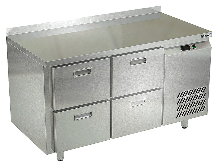 Морозильный стол Техно-ТТ СПБ/М-223/04-1306 предназначен для раскатки теста, обработки, заморозки и долговременного хранения продуктов, полуфабрикатов, напитков и мороженого на предприятиях общественного питания и торговли. Модель оснащена 2 секциями с 4 ящиками, направляющими с доводчиками (Австрия), бортом и круглыми ножками, регулируемыми по высоте на 50 мм (Италия). Корпус и столешница выполнены из нержавеющей стали AISI 430, задняя стенка и дно - из оцинкованной стали.