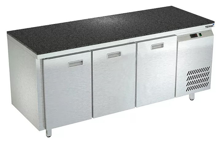 Морозильный стол Техно-ТТ СПБ/М-322/12-1807 предназначен для раскатки теста, обработки, заморозки и долговременного хранения продуктов, полуфабрикатов, напитков и мороженого на предприятиях общественного питания и торговли. Модель оснащена 1 секцией с дверью и регулируемой полкой-решеткой, 2 секциями с 2 ящиками, направляющими с доводчиками (Австрия), петлями-доводчиками (Польша) и круглыми ножками, регулируемыми по высоте на 50 мм (Италия). Корпус выполнен из нержавеющей стали AISI 430, задняя стенка и дно - из оцинкованной стали, столешница - из камня.
