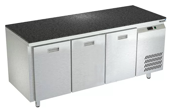 Морозильный стол Техно-ТТ СПБ/М-323/03-1806 предназначен для раскатки теста, обработки, заморозки и долговременного хранения продуктов, полуфабрикатов, напитков и мороженого на предприятиях общественного питания и торговли. Модель оснащена 3 секциями с 3 ящиками, направляющими с доводчиками (Австрия) и круглыми ножками, регулируемыми по высоте на 50 мм (Италия). Корпус выполнен из нержавеющей стали AISI 430, задняя стенка и дно - из оцинкованной стали, столешница - из камня.