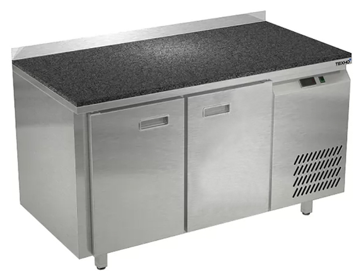 Морозильный стол Техно-ТТ СПБ/М-421/20-1307 предназначен для раскатки теста, обработки, заморозки и долговременного хранения продуктов, полуфабрикатов, напитков и мороженого на предприятиях общественного питания и торговли. Модель оснащена 2 секциями с 2 дверьми, петлями-доводчиками (Польша), бортом и круглыми ножками, регулируемыми по высоте на 50 мм (Италия). Корпус выполнен из нержавеющей стали AISI 430, задняя стенка и дно - из оцинкованной стали, столешница - из камня.