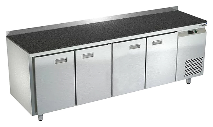 Морозильный стол Техно-ТТ СПБ/М-421/40-2206 предназначен для раскатки теста, обработки, заморозки и долговременного хранения продуктов, полуфабрикатов, напитков и мороженого на предприятиях общественного питания и торговли. Модель оснащена 4 секциями с 4 дверьми, регулируемой полкой-решеткой, петлями-доводчиками (Польша), бортом и круглыми ножками, регулируемыми по высоте на 50 мм (Италия). Корпус выполнен из нержавеющей стали AISI 430, задняя стенка и дно - из оцинкованной стали, столешница - из камня.