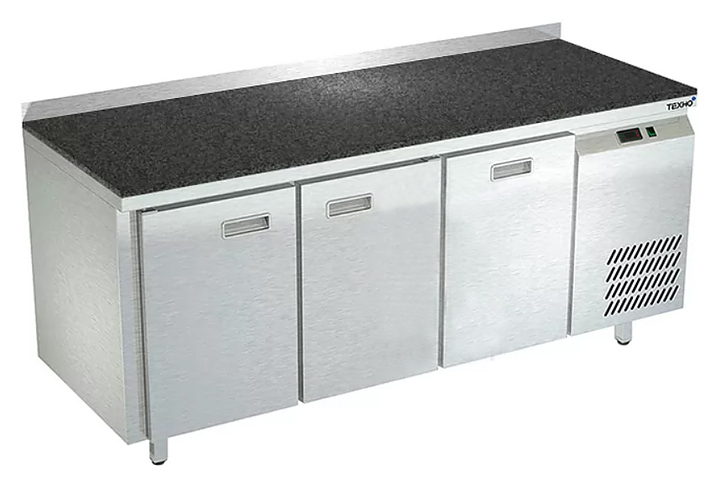 Морозильный стол Техно-ТТ СПБ/М-422/21-1807 предназначен для раскатки теста, обработки, заморозки и долговременного хранения продуктов, полуфабрикатов, напитков и мороженого на предприятиях общественного питания и торговли. Модель оснащена 2 секциями с 2 дверьми и регулируемой полкой-решеткой, я секцией с ящиками, направляющими с доводчиками (Австрия), петлями-доводчиками (Польша), бортом и круглыми ножками, регулируемыми по высоте на 50 мм (Италия). Корпус выполнен из нержавеющей стали AISI 430, задняя стенка и дно - из оцинкованной стали, столешница - из камня.