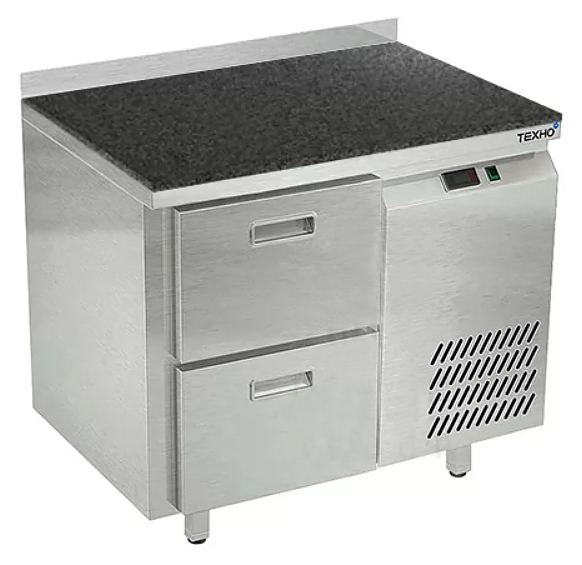 Морозильный стол Техно-ТТ СПБ/М-423/02-906 предназначен для раскатки теста, обработки, заморозки и долговременного хранения продуктов, полуфабрикатов, напитков и мороженого на предприятиях общественного питания и торговли. Модель оснащена 1 секцией с 2 ящиками, направляющими с доводчиками (Австрия), бортом и круглыми ножками, регулируемыми по высоте на 50 мм (Италия). Корпус выполнен из нержавеющей стали AISI 430, задняя стенка и дно - из оцинкованной стали, столешница - из камня.