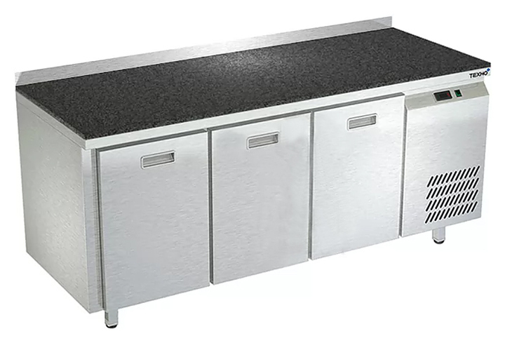 Морозильный стол Техно-ТТ СПБ/М-423/03-1807 предназначен для раскатки теста, обработки, заморозки и долговременного хранения продуктов, полуфабрикатов, напитков и мороженого на предприятиях общественного питания и торговли. Модель оснащена 3 секциями с 3 ящиками, направляющими с доводчиками (Австрия), бортом и круглыми ножками, регулируемыми по высоте на 50 мм (Италия). Корпус выполнен из нержавеющей стали AISI 430, задняя стенка и дно - из оцинкованной стали, столешница - из камня.