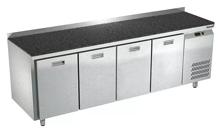 Морозильный стол Техно-ТТ СПБ/М-423/04-2206 предназначен для раскатки теста, обработки, заморозки и долговременного хранения продуктов, полуфабрикатов, напитков и мороженого на предприятиях общественного питания и торговли. Модель оснащена 4 секциями с 4 ящиками, направляющими с доводчиками (Австрия), бортом и круглыми ножками, регулируемыми по высоте на 50 мм (Италия). Корпус выполнен из нержавеющей стали AISI 430, задняя стенка и дно - из оцинкованной стали, столешница - из камня.