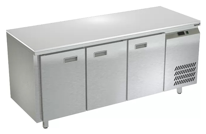 Морозильный стол Техно-ТТ СПБ/М-521/30-1806 предназначен для раскатки теста, обработки, заморозки и долговременного хранения продуктов, полуфабрикатов, напитков и мороженого на предприятиях общественного питания и торговли. Модель оснащена 3 секциями с 3 дверьми и регулируемой полкой-решеткой, петлями-доводчиками (Польша) и круглыми ножками, регулируемыми по высоте на 50 мм (Италия). Корпус выполнен из нержавеющей стали AISI 430, задняя стенка и дно - из оцинкованной стали, столешница - из полипропилена.
