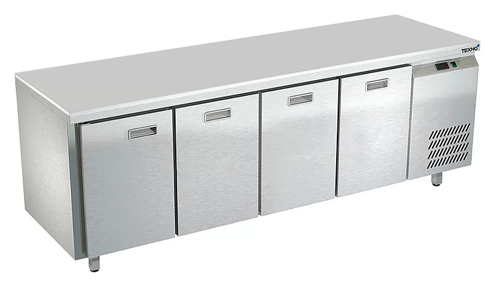 Морозильный стол Техно-ТТ СПБ/М-522/13-2207 предназначен для раскатки теста, обработки, заморозки и долговременного хранения продуктов, полуфабрикатов, напитков и мороженого на предприятиях общественного питания и торговли. Модель оснащена 1 секцией с дверью и регулируемой полкой-решеткой, 3 секциями с 3 ящиками, направляющими с доводчиками (Австрия), петлями-доводчиками (Польша) и круглыми ножками, регулируемыми по высоте на 50 мм (Италия). Корпус выполнен из нержавеющей стали AISI 430, задняя стенка и дно - из оцинкованной стали, столешница - из полипропилена.