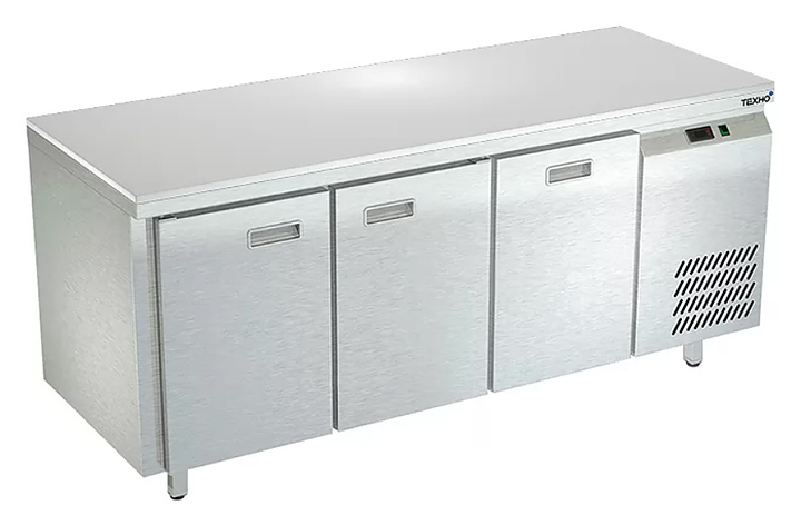 Морозильный стол Техно-ТТ СПБ/М-522/21-1806 предназначен для раскатки теста, обработки, заморозки и долговременного хранения продуктов, полуфабрикатов, напитков и мороженого на предприятиях общественного питания и торговли. Модель оснащена 2 секциями с 2 дверьми и регулируемой полкой-решеткой, 1 секцией с ящиком, направляющими с доводчиками (Австрия), петлями-доводчиками (Польша) и круглыми ножками, регулируемыми по высоте на 50 мм (Италия). Корпус выполнен из нержавеющей стали AISI 430, задняя стенка и дно - из оцинкованной стали, столешница - из полипропилена.