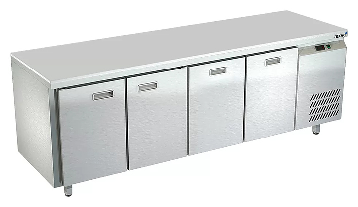 Морозильный стол Техно-ТТ СПБ/М-522/22-2207 предназначен для раскатки теста, обработки, заморозки и долговременного хранения продуктов, полуфабрикатов, напитков и мороженого на предприятиях общественного питания и торговли. Модель оснащена 2 секциями с дверьми и регулируемой полкой-решеткой, 2 секциями с 2 ящиками, направляющими с доводчиками (Австрия), петлями-доводчиками (Польша) и круглыми ножками, регулируемыми по высоте на 50 мм (Италия). Корпус выполнен из нержавеющей стали AISI 430, задняя стенка и дно - из оцинкованной стали, столешница - из полипропилена.