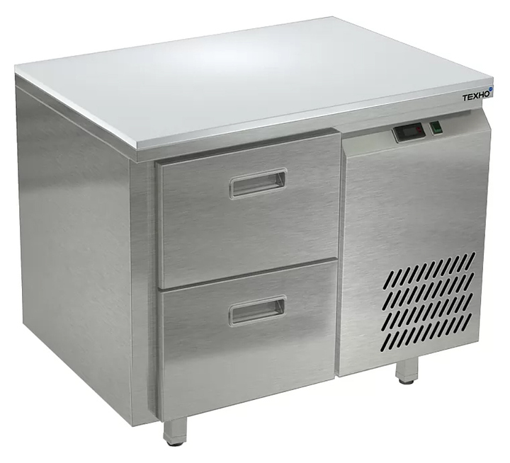Морозильный стол Техно-ТТ СПБ/М-523/02-906 предназначен для раскатки теста, обработки, заморозки и долговременного хранения продуктов, полуфабрикатов, напитков и мороженого на предприятиях общественного питания и торговли. Модель оснащена 1 секцией с 2 ящиками, направляющими с доводчиками (Австрия) и круглыми ножками, регулируемыми по высоте на 50 мм (Италия). Корпус выполнен из нержавеющей стали AISI 430, задняя стенка и дно - из оцинкованной стали, столешница - из полипропилена.