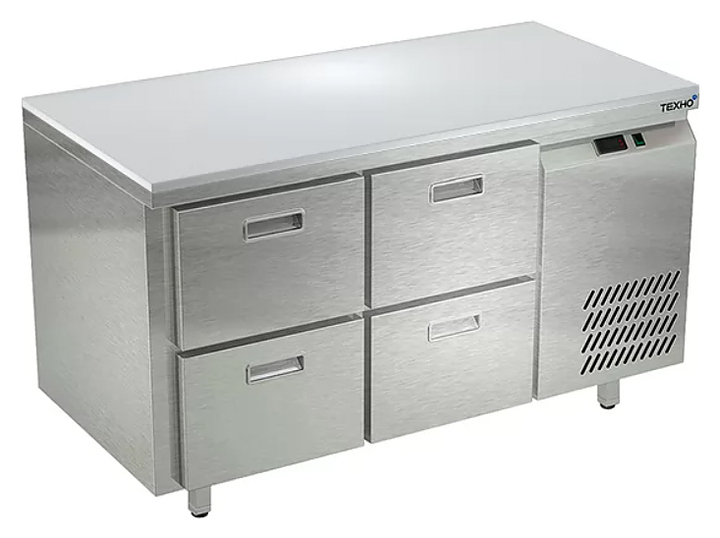Морозильный стол Техно-ТТ СПБ/М-523/04-1307 предназначен для раскатки теста, обработки, заморозки и долговременного хранения продуктов, полуфабрикатов, напитков и мороженого на предприятиях общественного питания и торговли. Модель оснащена 2 секциями с 4 ящиками, направляющими с доводчиками (Австрия) и круглыми ножками, регулируемыми по высоте на 50 мм (Италия). Корпус выполнен из нержавеющей стали AISI 430, задняя стенка и дно - из оцинкованной стали, столешница - из полипропилена.