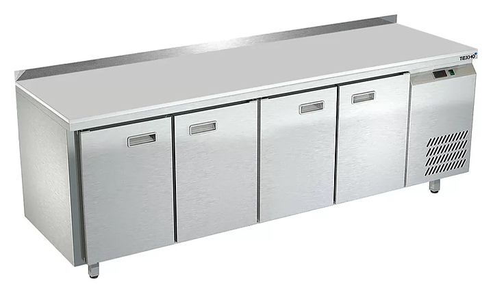 Морозильный стол Техно-ТТ СПБ/М-621/40-2207 предназначен для раскатки теста, обработки, заморозки и долговременного хранения продуктов, полуфабрикатов, напитков и мороженого на предприятиях общественного питания и торговли. Модель оснащена 4 секциями с 4 дверьми и регулируемой полкой-решеткой, петлями-доводчиками (Польша), бортом и круглыми ножками, регулируемыми по высоте на 50 мм (Италия). Корпус выполнен из нержавеющей стали AISI 430, задняя стенка и дно - из оцинкованной стали, столешница - из полипропилена.